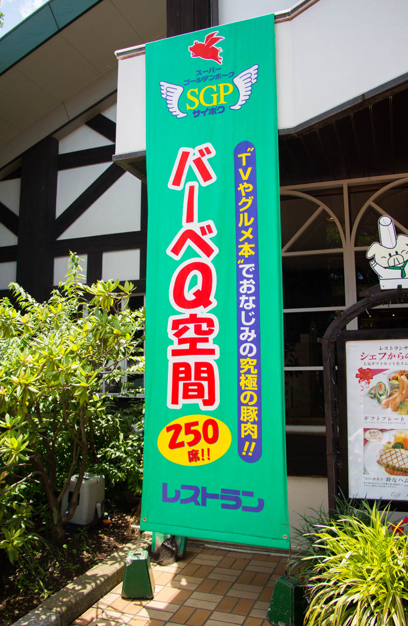 250名入れる、大きな屋内型バーベキュー施設。別名焼肉大ホール。サイボクのブランド豚「ゴールデンポーク」を使った焼肉や、サイボク特製ソーセージ、焼き野菜などのバーベキューが楽しめます。雰囲気はワイワイ賑やかな感じですね。