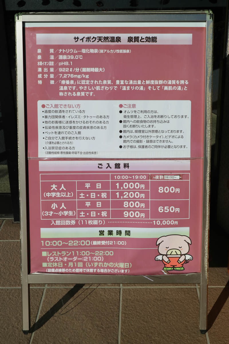 サイボク併設の日帰り温泉施設。天然温泉で、酸素ルームや高濃度炭酸湯もある充実っぷり。